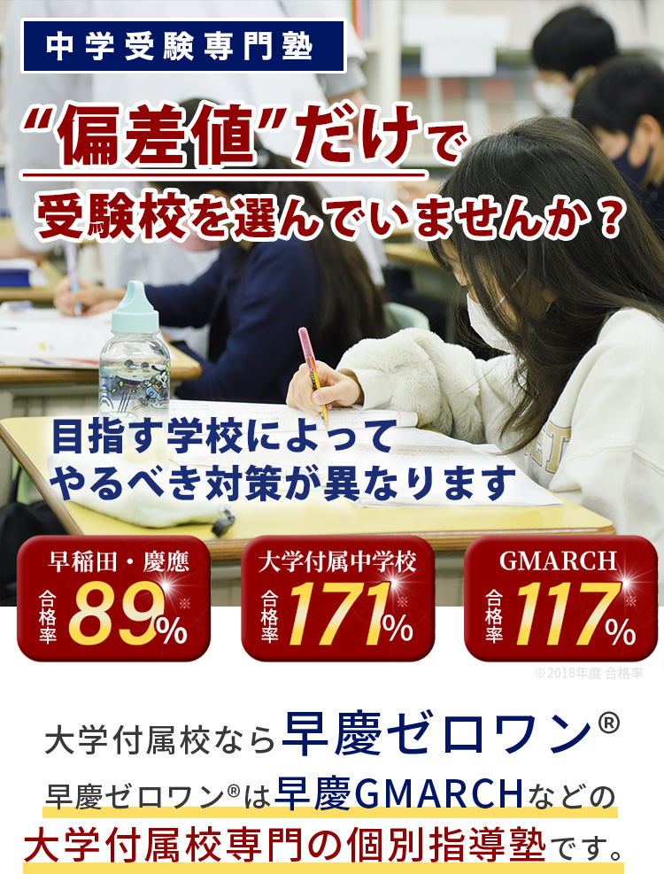 そのため、親御様の時間やストレスを大幅に削減し、「ケンカしない中学受験」を実現します。ワンストップ個別指導は早慶ゼロワンだけのサービスです。