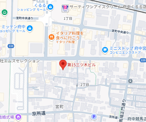 | 住所 | 東京都府中市宮町2丁目15-13 第15三ツ木ビル8階 |