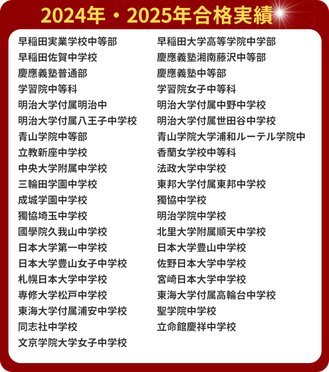 これは、ワンストップ個別指導によって、一生ものの「ギフト(才能)」を身に付け、さらに、受験を通して生きる力を育んだ成果と言えるでしょう。
