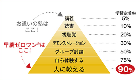 学習の定着率を格段に上げるA.O.ラーニング。早慶ゼロワン®では「人に教える・説明する」という学習方法を取っています。