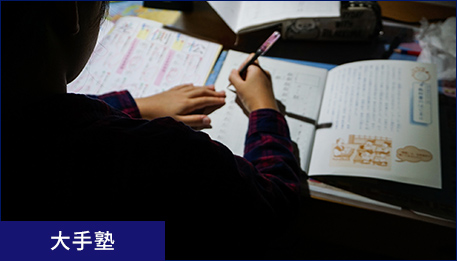 集団塾の補習(フォロー)が中心となっており、集団塾の成績を上げることが目的です。