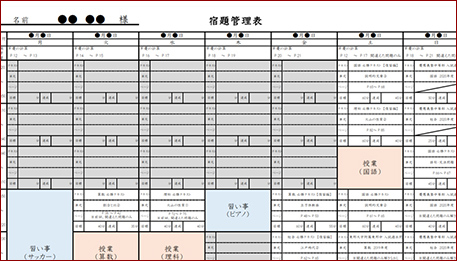 宿題管理表によって好きな科目に偏ったり、苦手科目を避けることを防ぎます。