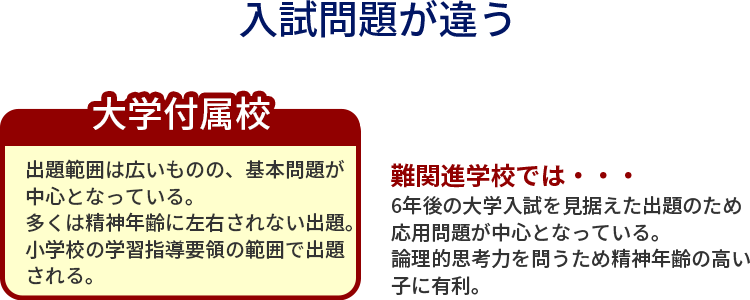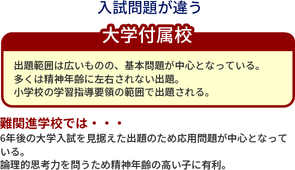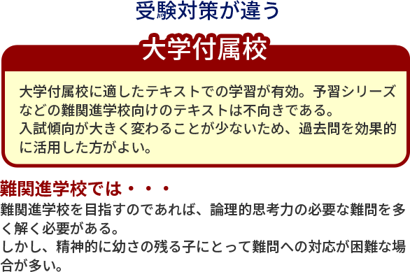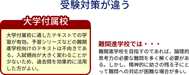 しかし、大学付属校を志望するなら難問ばかりを扱う大手集団塾は不向きといえる。