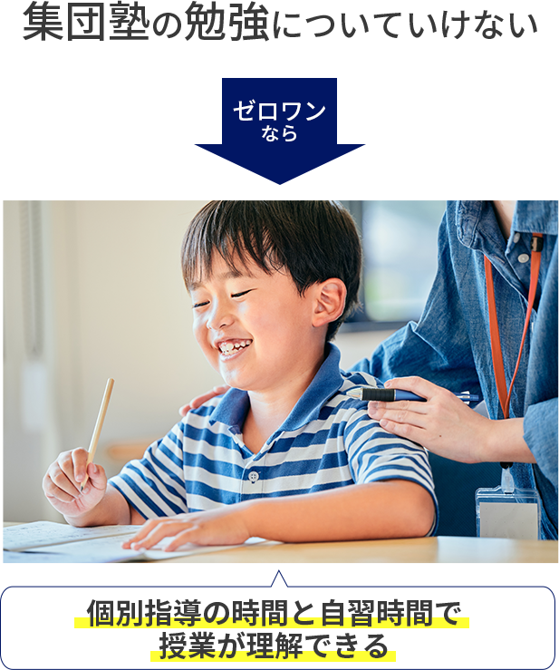 早慶ゼロワン®に入塾する前の塾では、本人の理解が追いついていない中でどんどん授業が進んでいました。